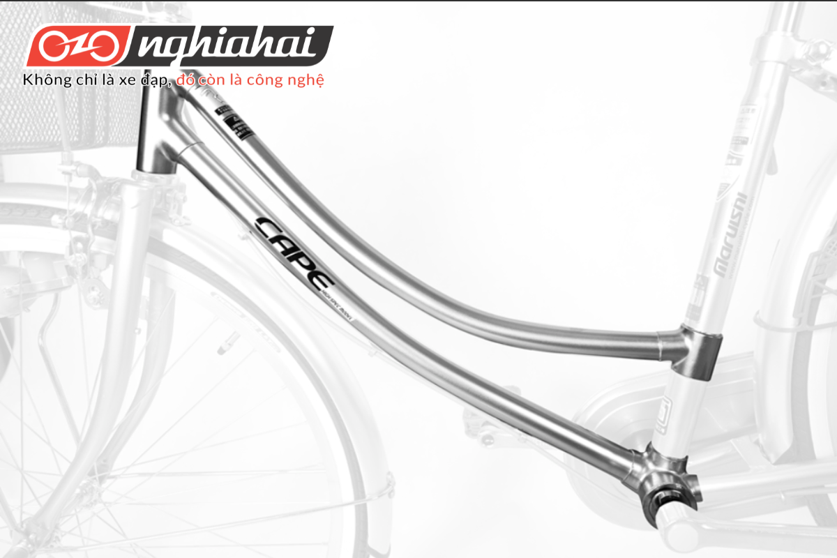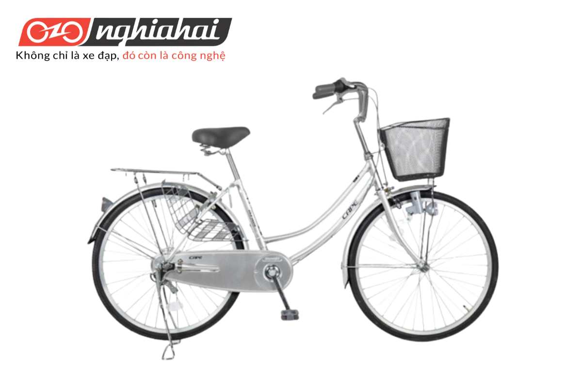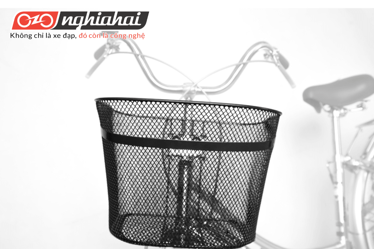 • Chiếc giỏ xe sắt: được bọc nhựa chống hoen gỉ và dễ dàng nhận biết với hình dán tên hãng đặt ở phía trước. Bên cạnh đó, phần thân sau xe được trang bị ba-ga, giúp tăng khả năng chở thêm người hoặc đồ đạc cần thiết, đặc biệt hữu ích cho các chị, các mẹ trong những cuộc đi chợ hay dạo phố.